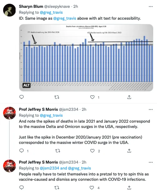 But at the same time, the vocal “Covid Is Not Over” contingent of twitter has taken not only to crediting the virus for these sudden deaths, but using them as a justification for their continued insistence that normal life is untenable.