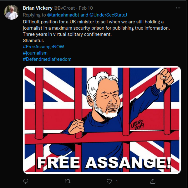 “Numerous tweets highlighted the apparent irony that the UK was establishing and leading an international initiative on media freedom, while simultaneously undermining free media…in their handling of Assange”, the researchers found.